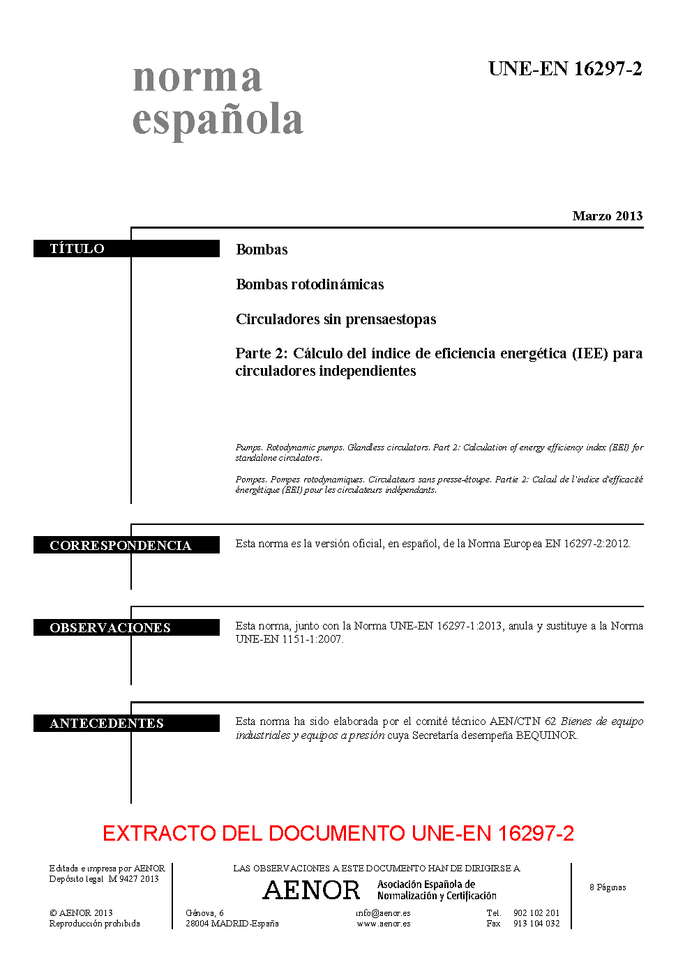 | Publisher | Asociacion Espanola de Normalizacion y Certificacion (AENOR) |