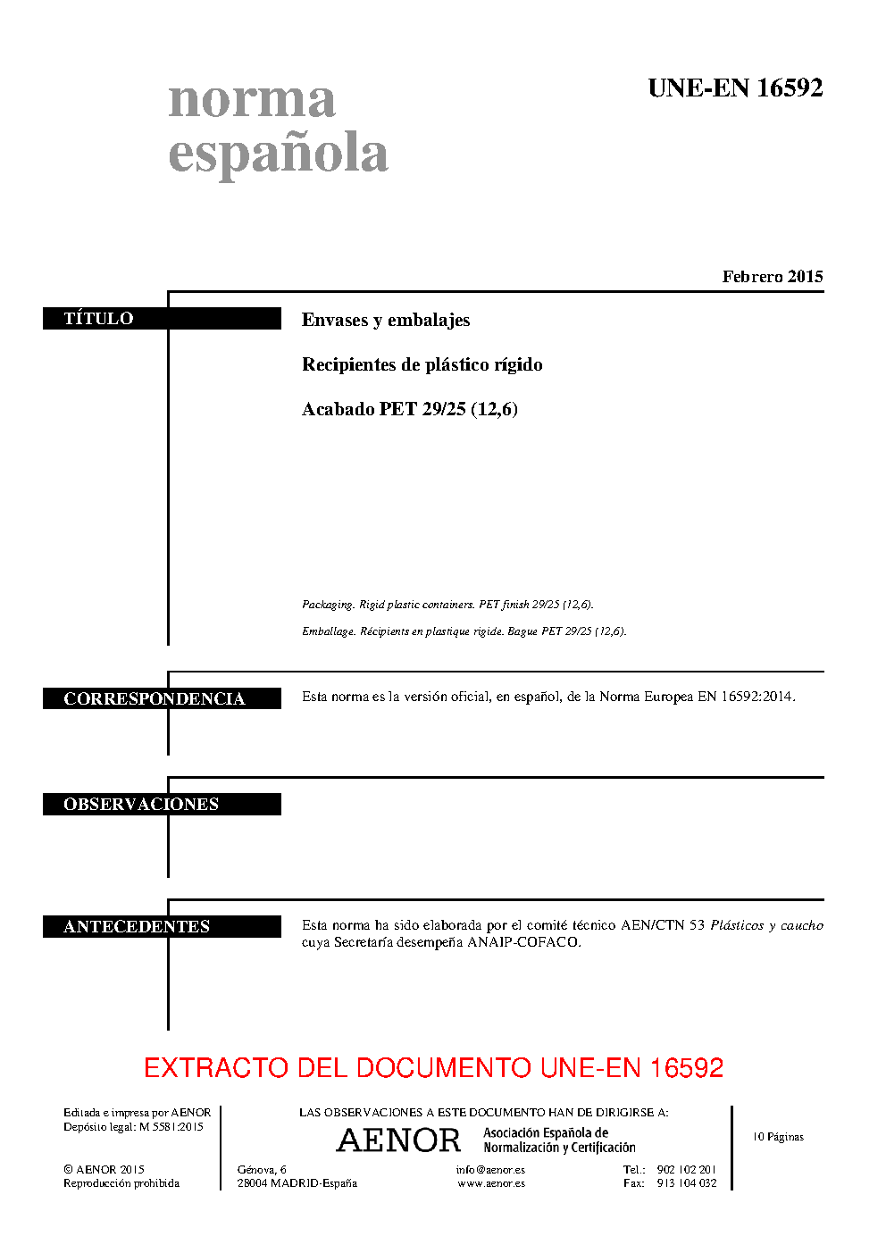 | Publisher | Asociacion Espanola de Normalizacion y Certificacion (AENOR) |