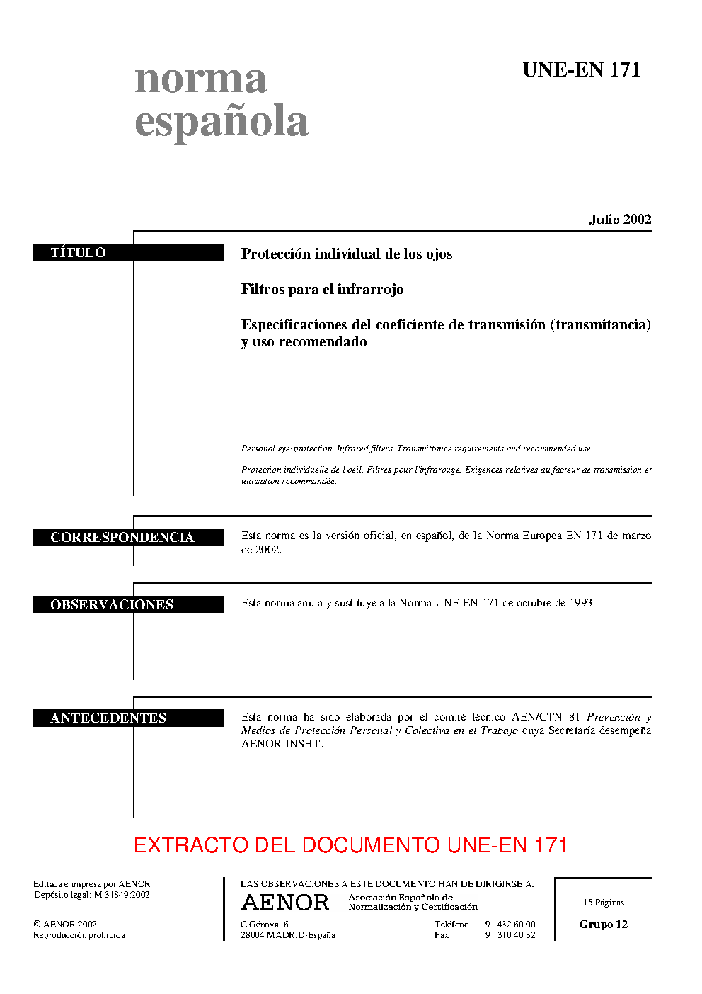| Publisher | Asociacion Espanola de Normalizacion y Certificacion (AENOR) |