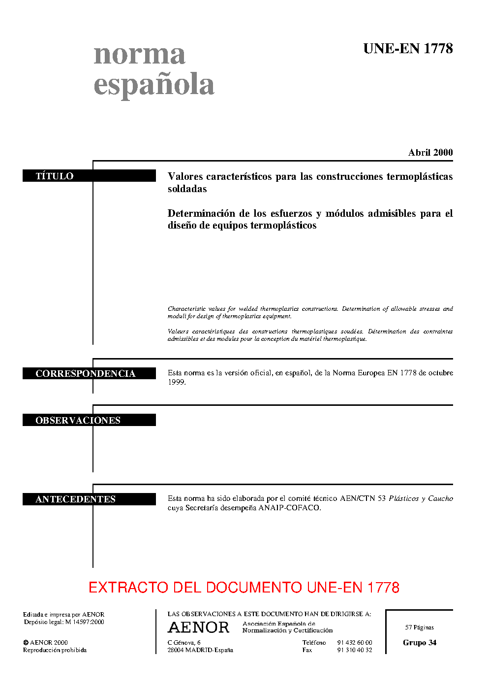 | Publisher | Asociacion Espanola de Normalizacion y Certificacion (AENOR) |