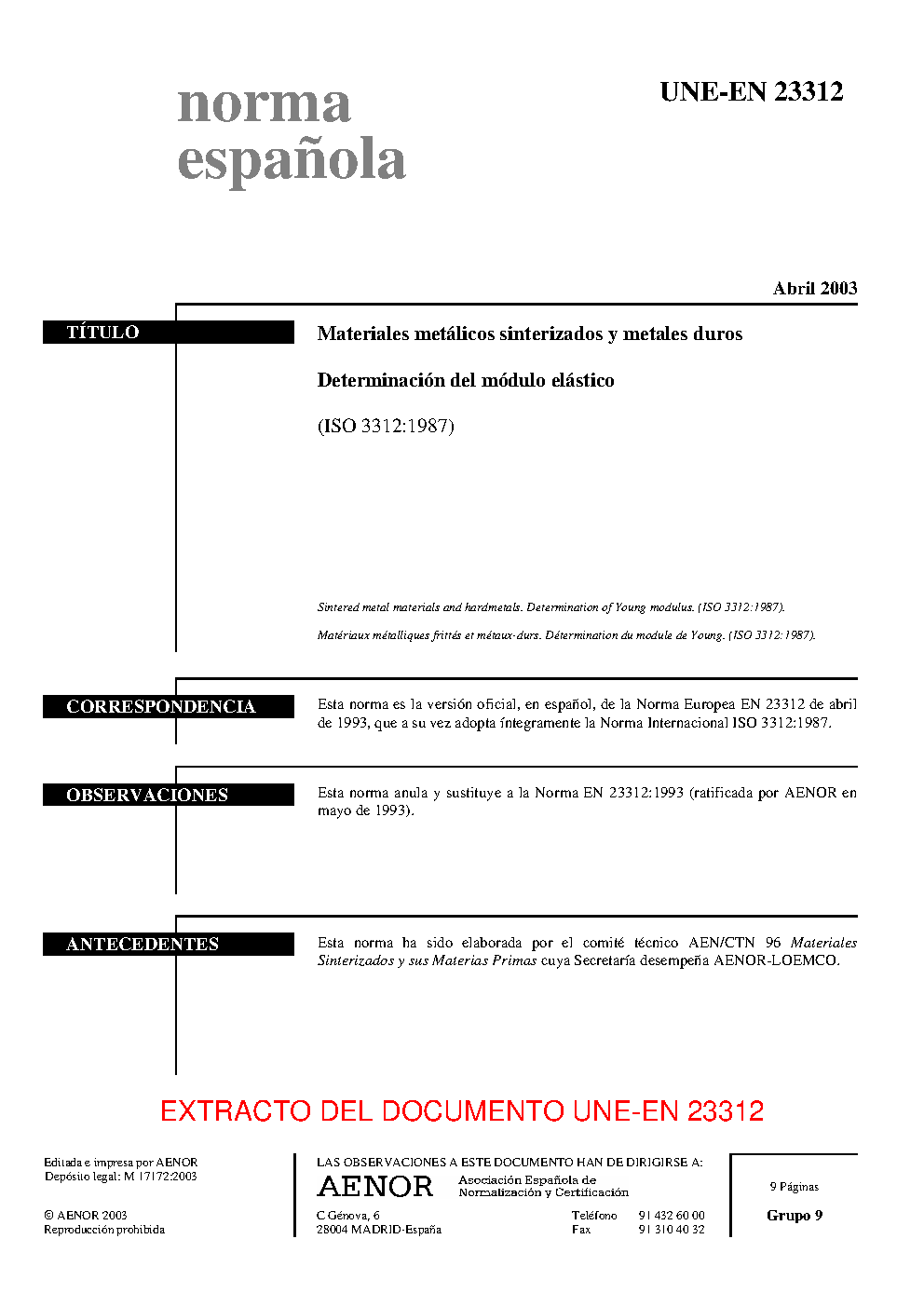 | Publisher | Asociacion Espanola de Normalizacion y Certificacion (AENOR) |