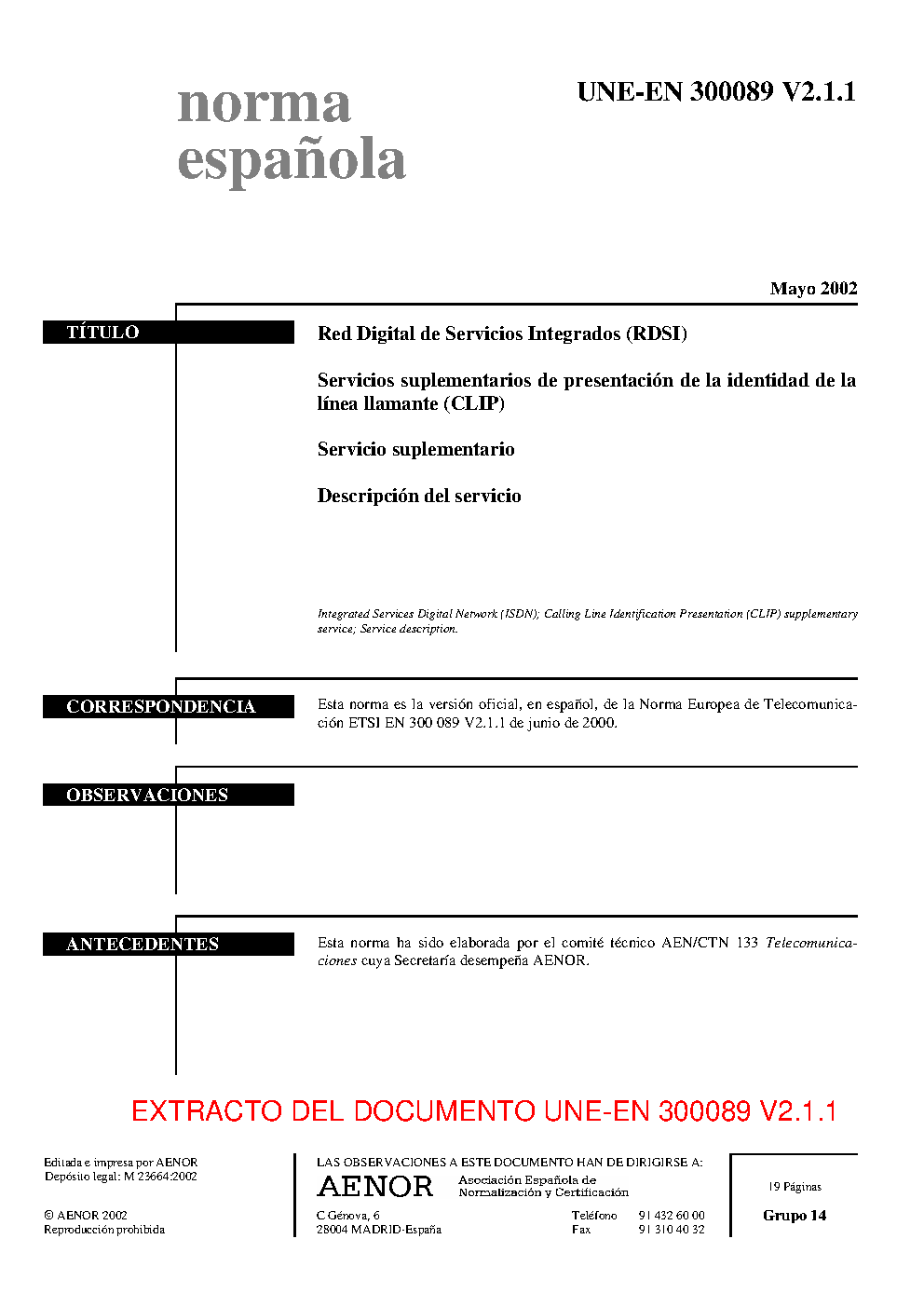 | Publisher | Asociacion Espanola de Normalizacion y Certificacion (AENOR) |