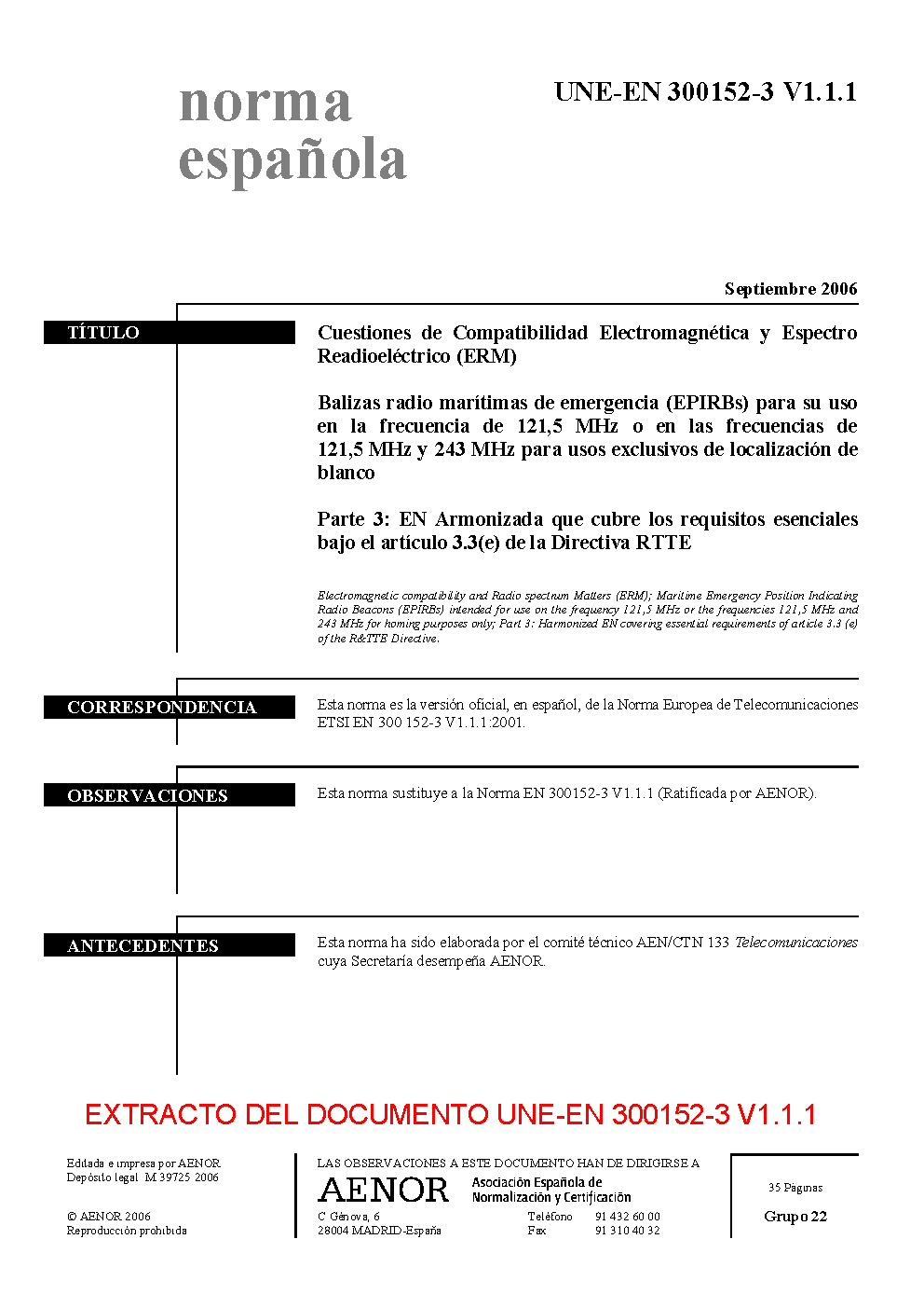 UNE-EN 300152-3 V1.1.1:2006