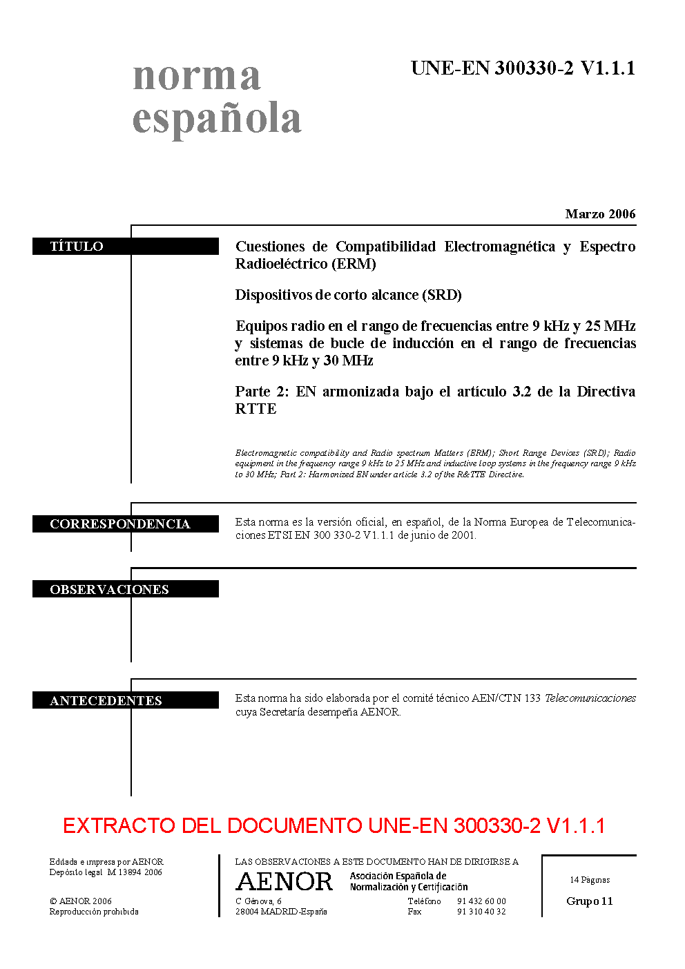 UNE-EN 300330-2 V1.1.1:2006