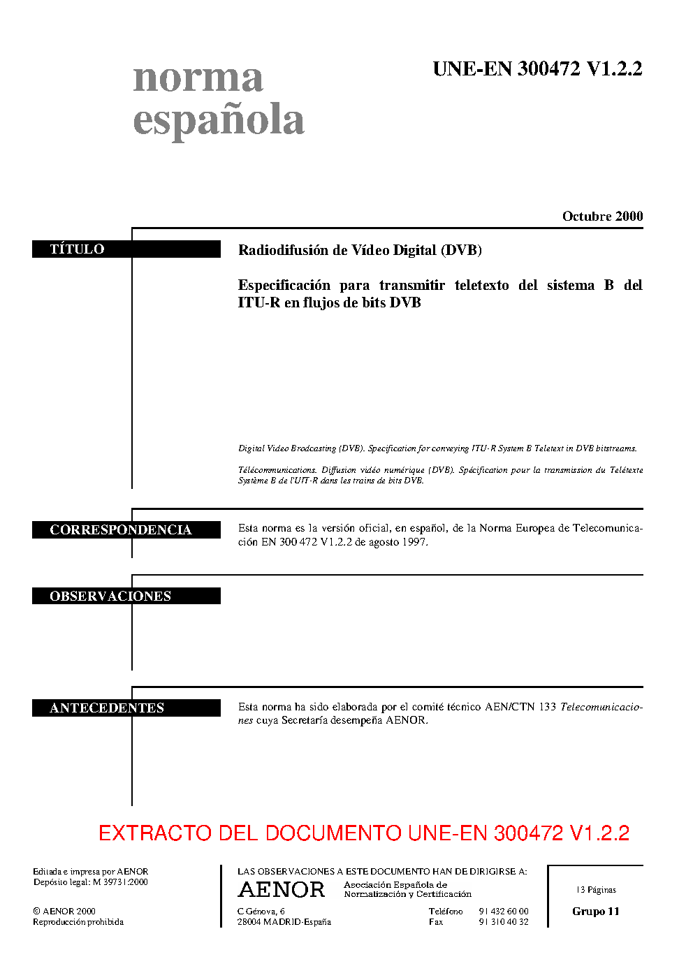 UNE-EN 300472 V1.2.2:2000