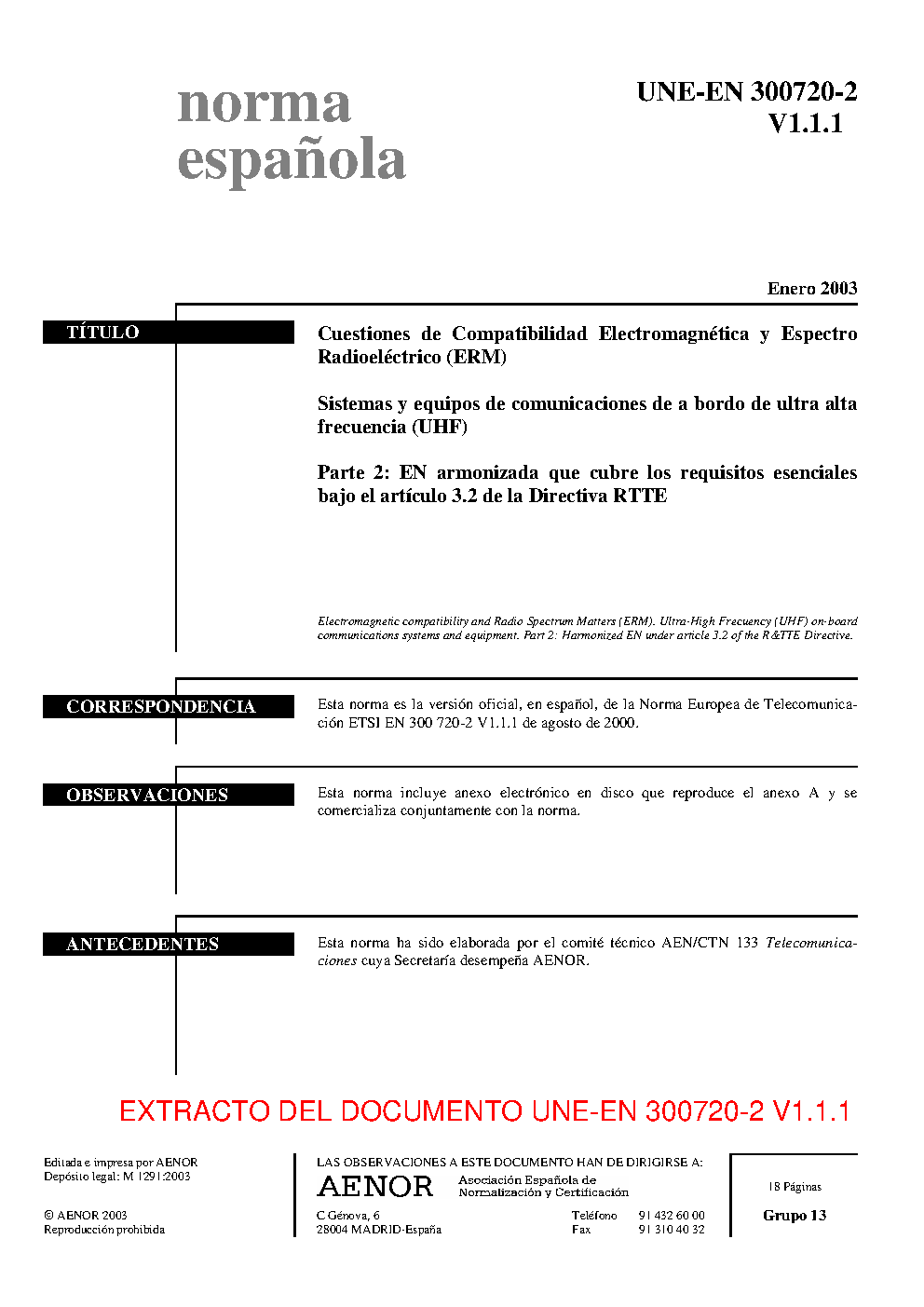 | Publisher | Asociacion Espanola de Normalizacion y Certificacion (AENOR) |