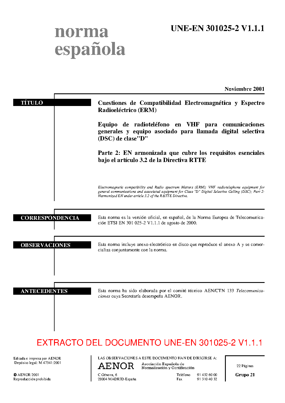 | Publisher | Asociacion Espanola de Normalizacion y Certificacion (AENOR) |