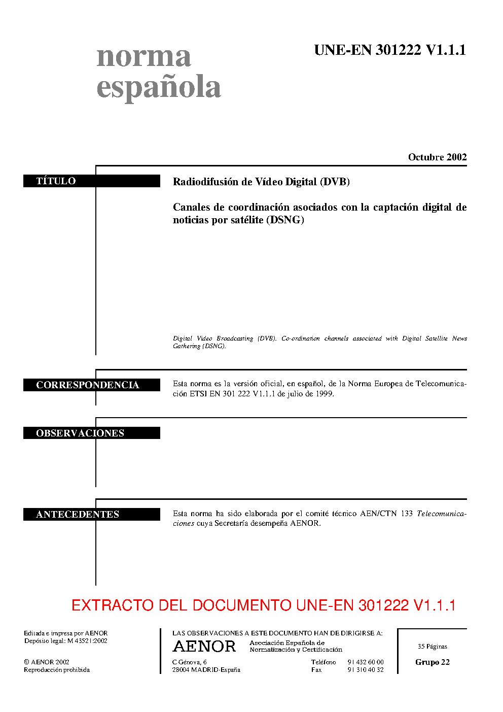 | Publisher | Asociacion Espanola de Normalizacion y Certificacion (AENOR) |