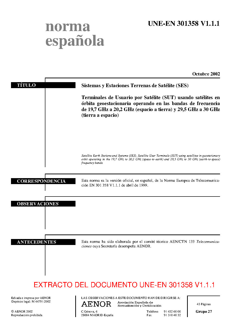 | Publisher | Asociacion Espanola de Normalizacion y Certificacion (AENOR) |