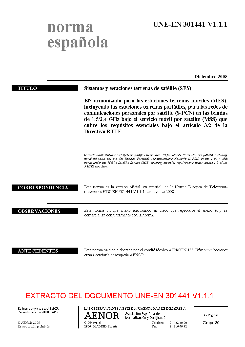 UNE-EN 301441 V1.1.1:2005
