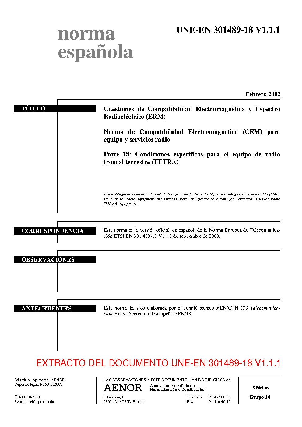 UNE-EN 301489-18 V1.1.1:2002
