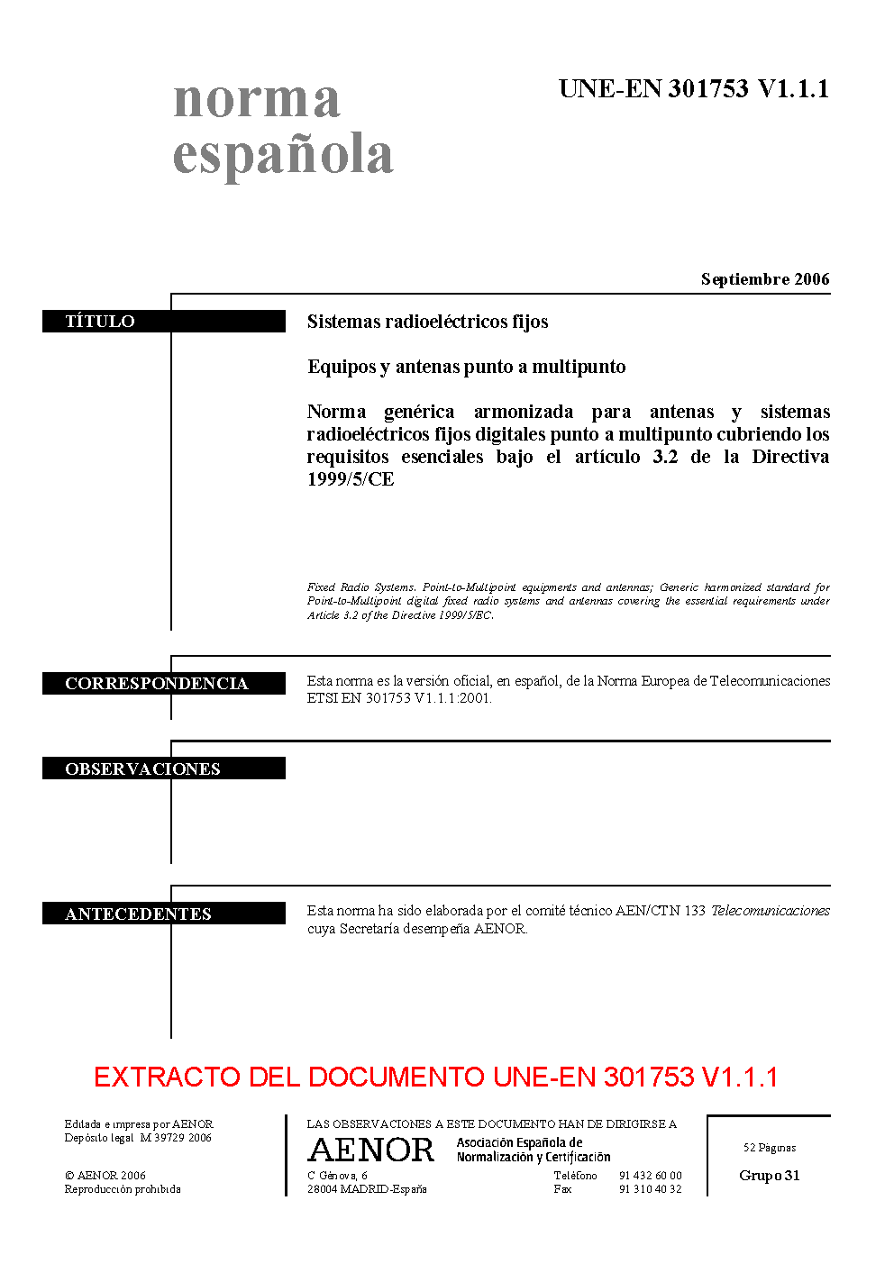 UNE-EN 301753 V1.1.1:2006
