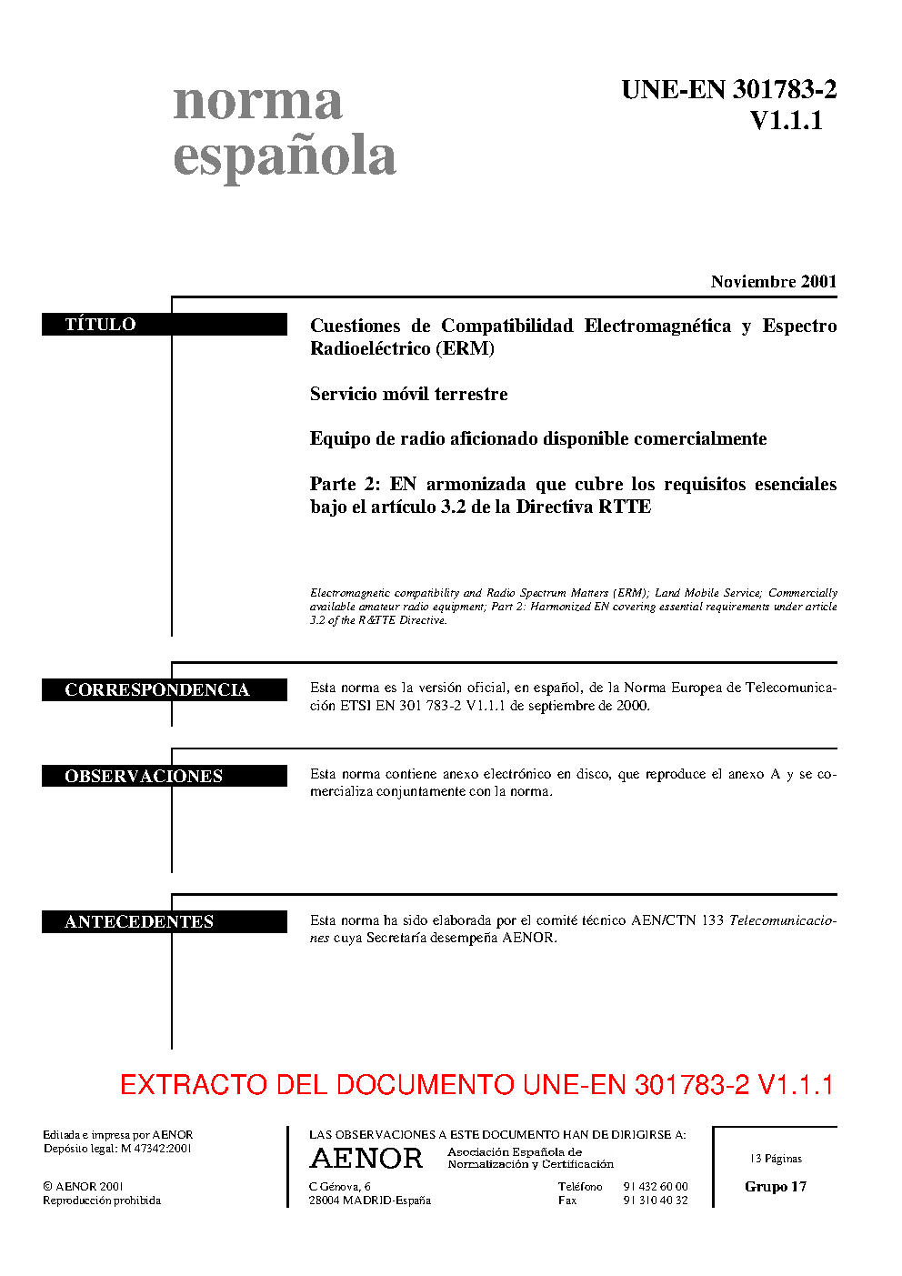 UNE-EN 301783-2 V1.1.1:2001