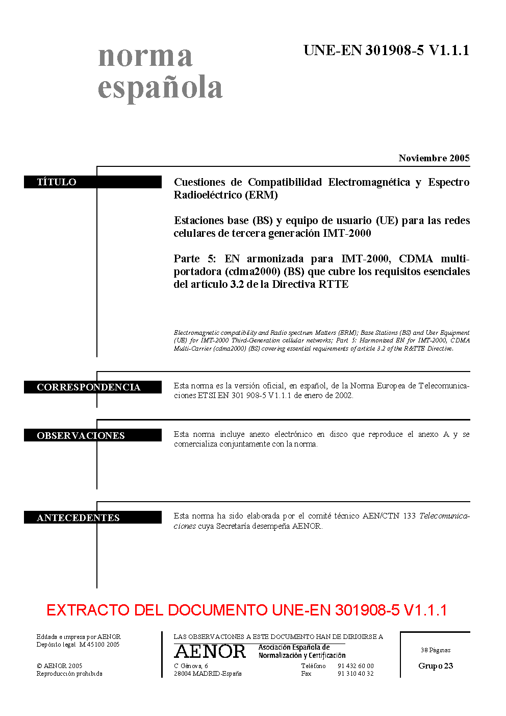 UNE-EN 301908-5 V1.1.1:2005