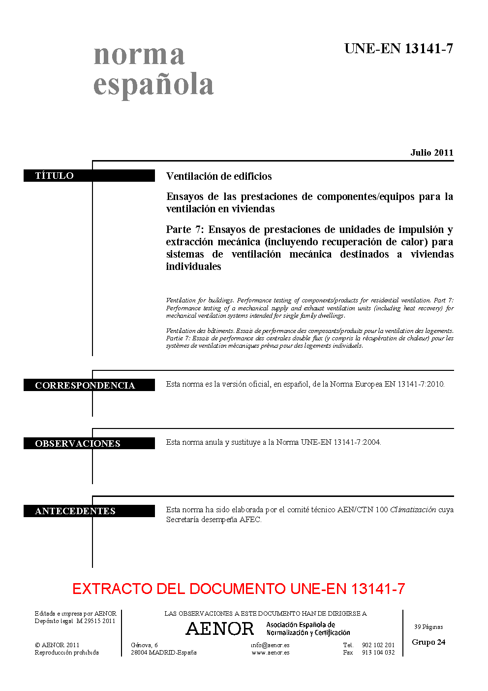 | Publisher | Asociacion Espanola de Normalizacion y Certificacion (AENOR) |