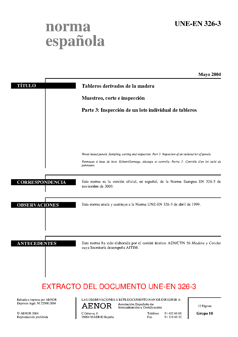 UNE-EN 326-3:2004 (R2019)