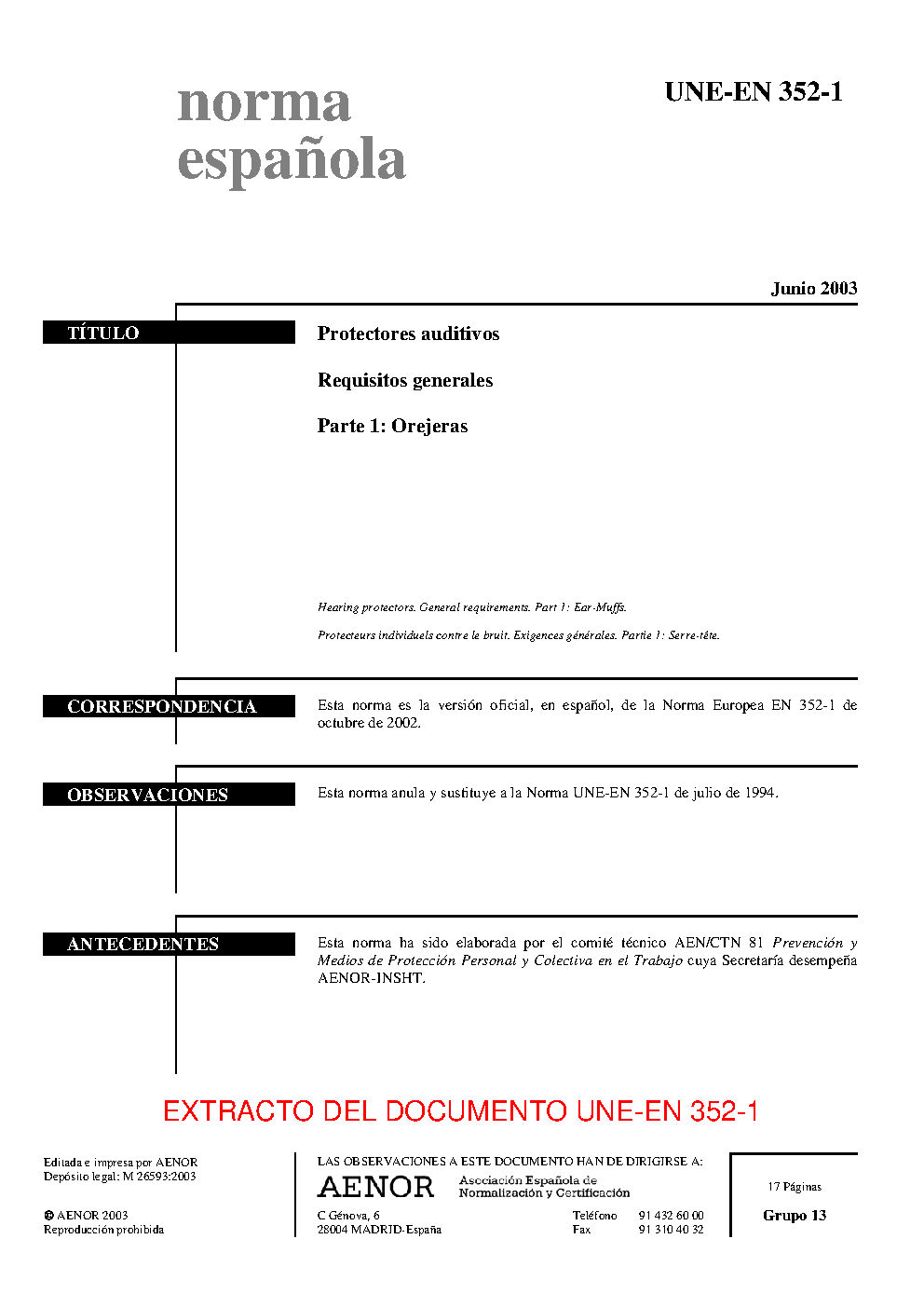 UNE-EN 352-1:2003 (R2014)