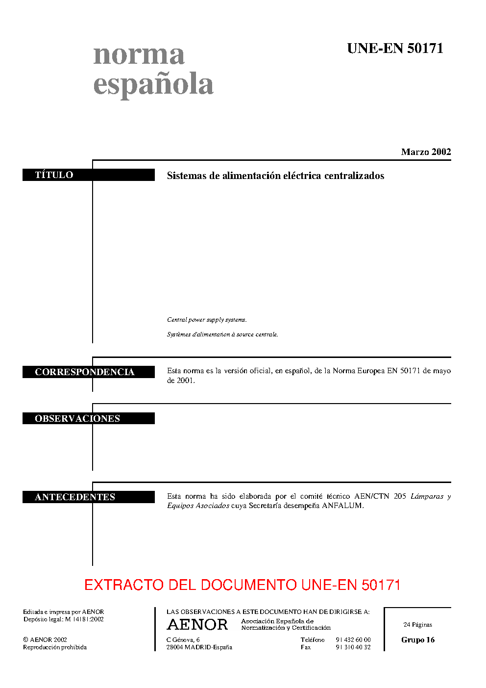 UNE-EN 50171:2022/AC:2024-08