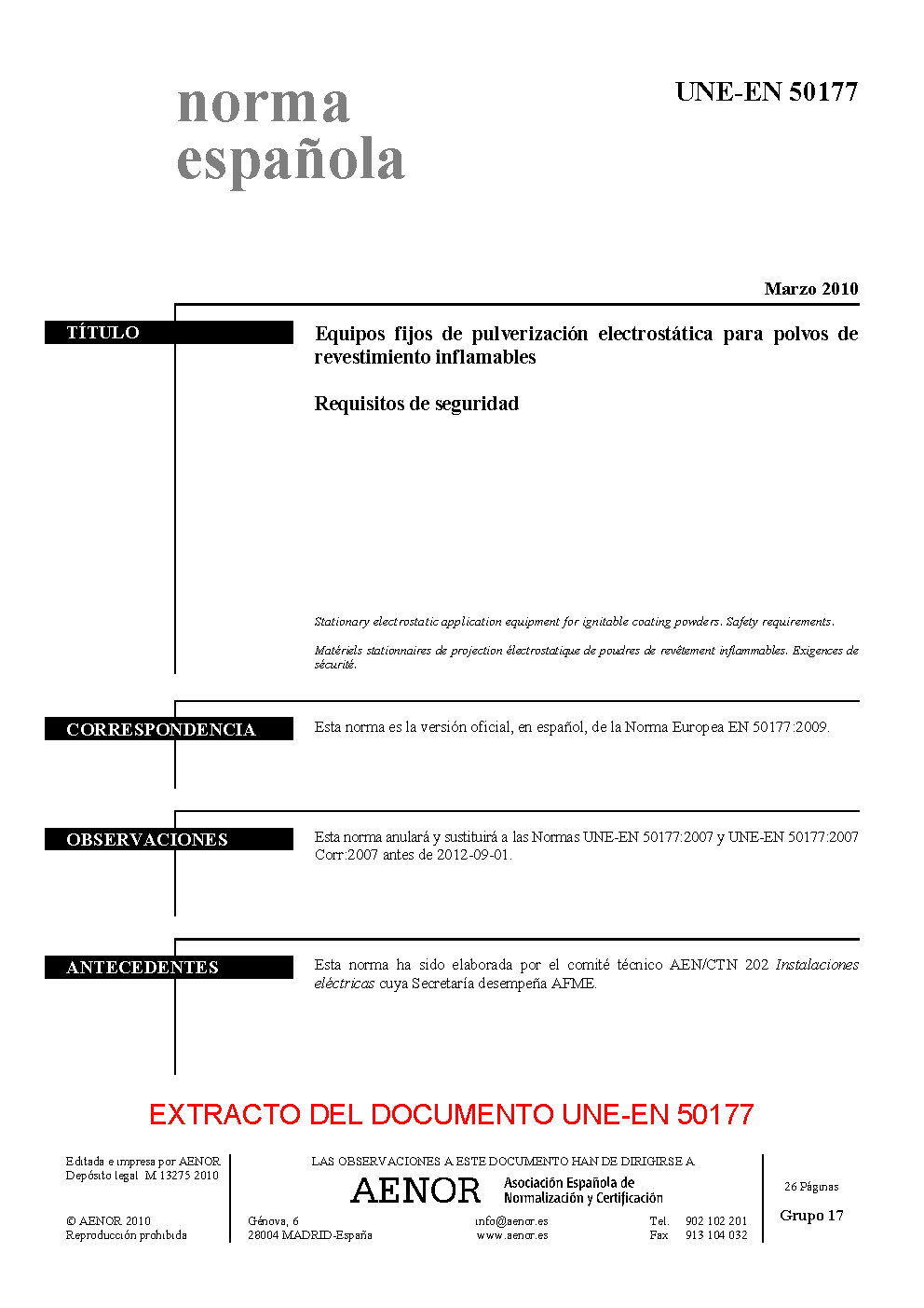 | Publisher | Asociacion Espanola de Normalizacion y Certificacion (AENOR) |
