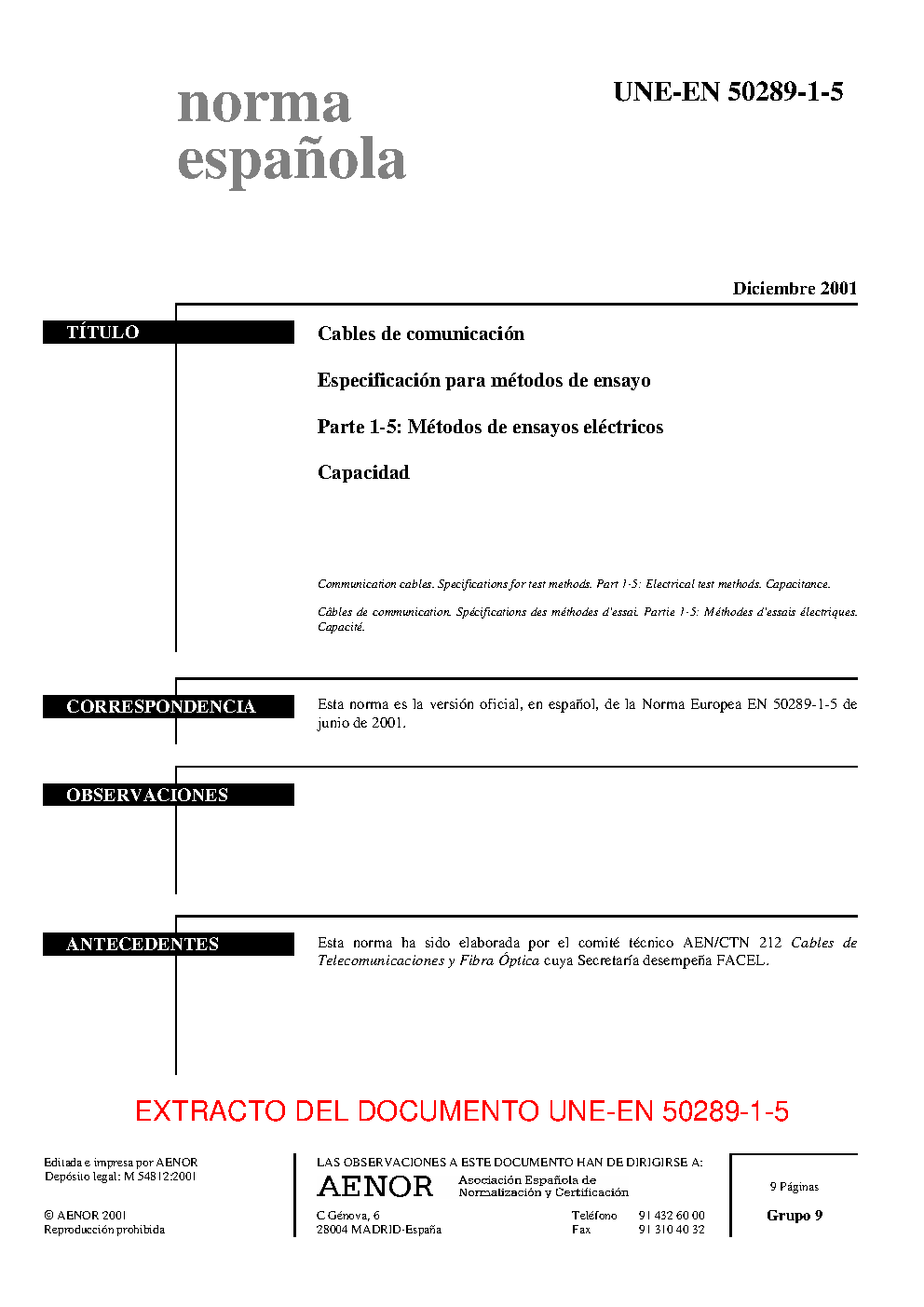 | Publisher | Asociacion Espanola de Normalizacion y Certificacion (AENOR) |