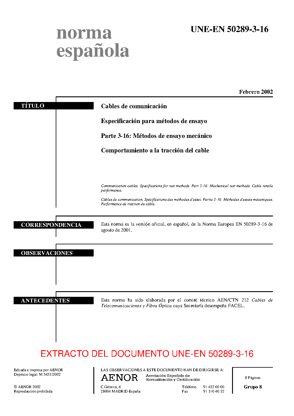 | Publisher | Asociacion Espanola de Normalizacion y Certificacion (AENOR) |