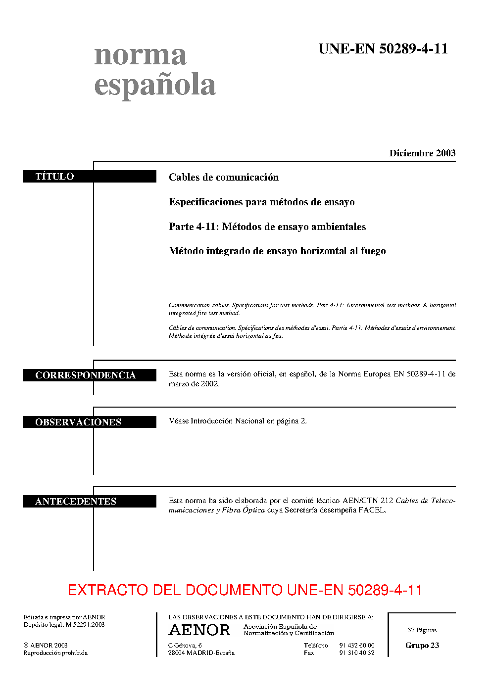 | Publisher | Asociacion Espanola de Normalizacion y Certificacion (AENOR) |