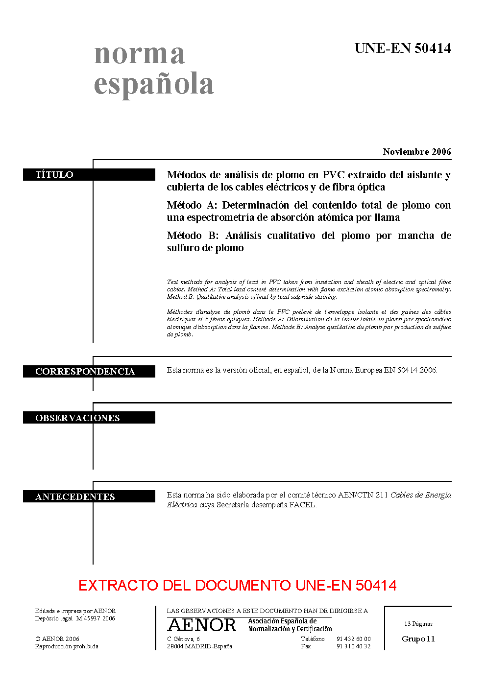 | Publisher | Asociacion Espanola de Normalizacion y Certificacion (AENOR) |
