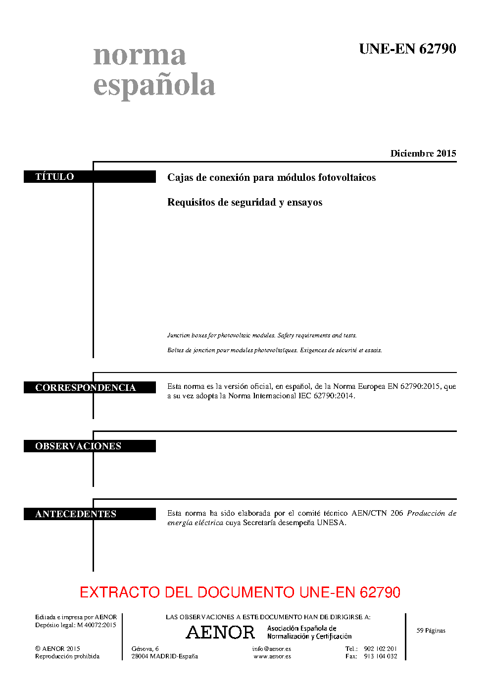 | Publisher | Asociacion Espanola de Normalizacion y Certificacion (AENOR) |