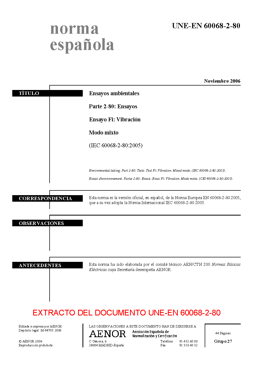 | Publisher | Asociacion Espanola de Normalizacion y Certificacion (AENOR) |