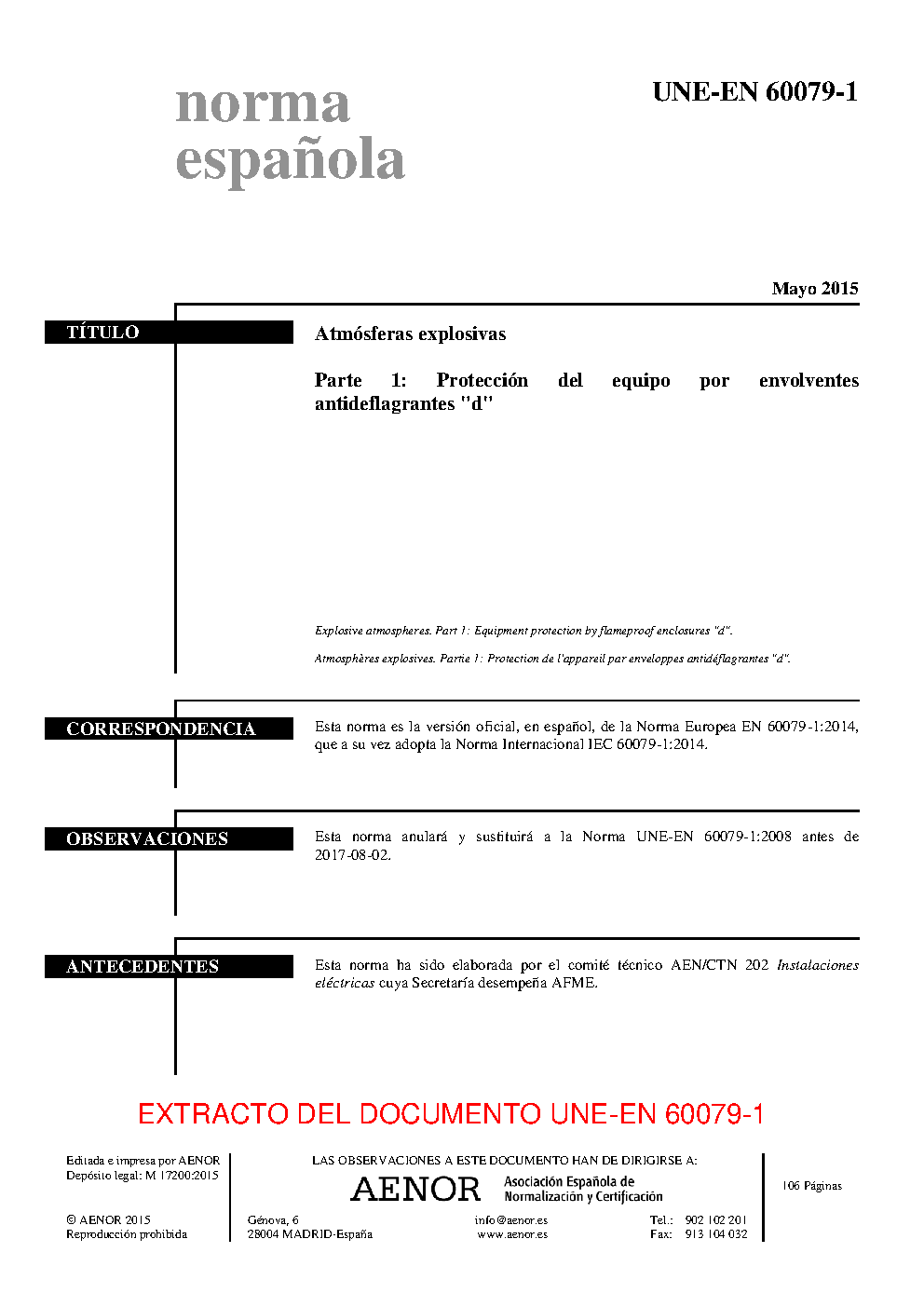 | Publisher | Asociacion Espanola de Normalizacion y Certificacion (AENOR) |