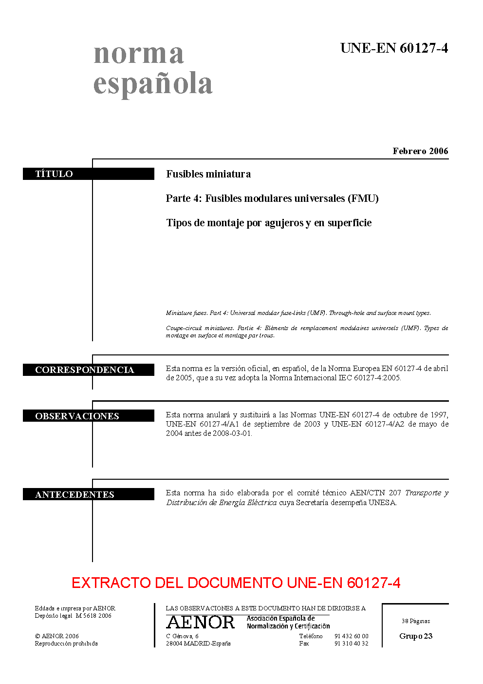 UNE-EN 60127-4:2006 ERRATUM:2006