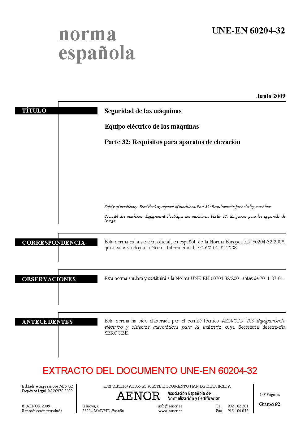 UNE-EN 60204-32:2009