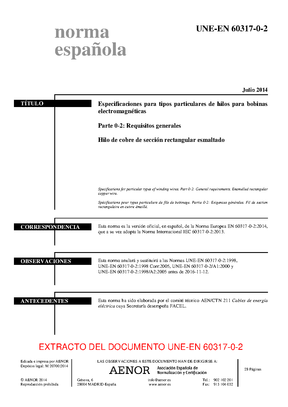 | Publisher | Asociacion Espanola de Normalizacion y Certificacion (AENOR) |