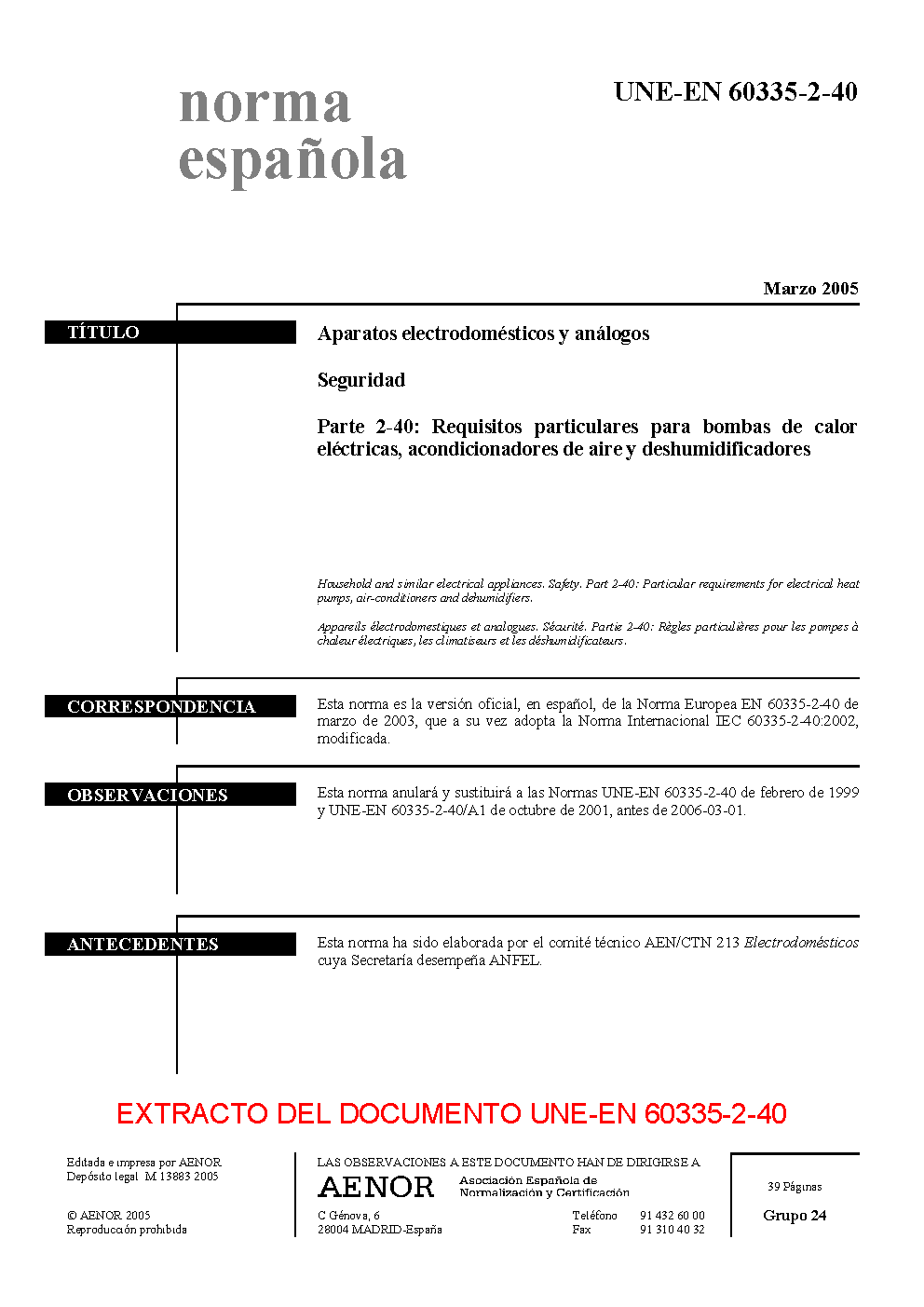 | Publisher | Asociacion Espanola de Normalizacion y Certificacion (AENOR) |