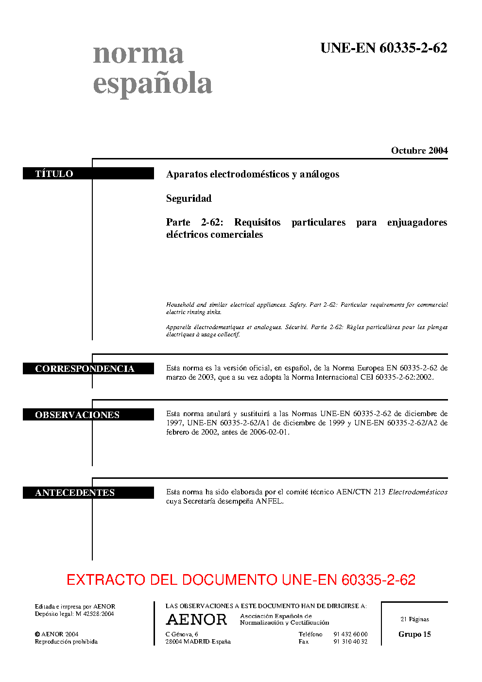 | Publisher | Asociacion Espanola de Normalizacion y Certificacion (AENOR) |