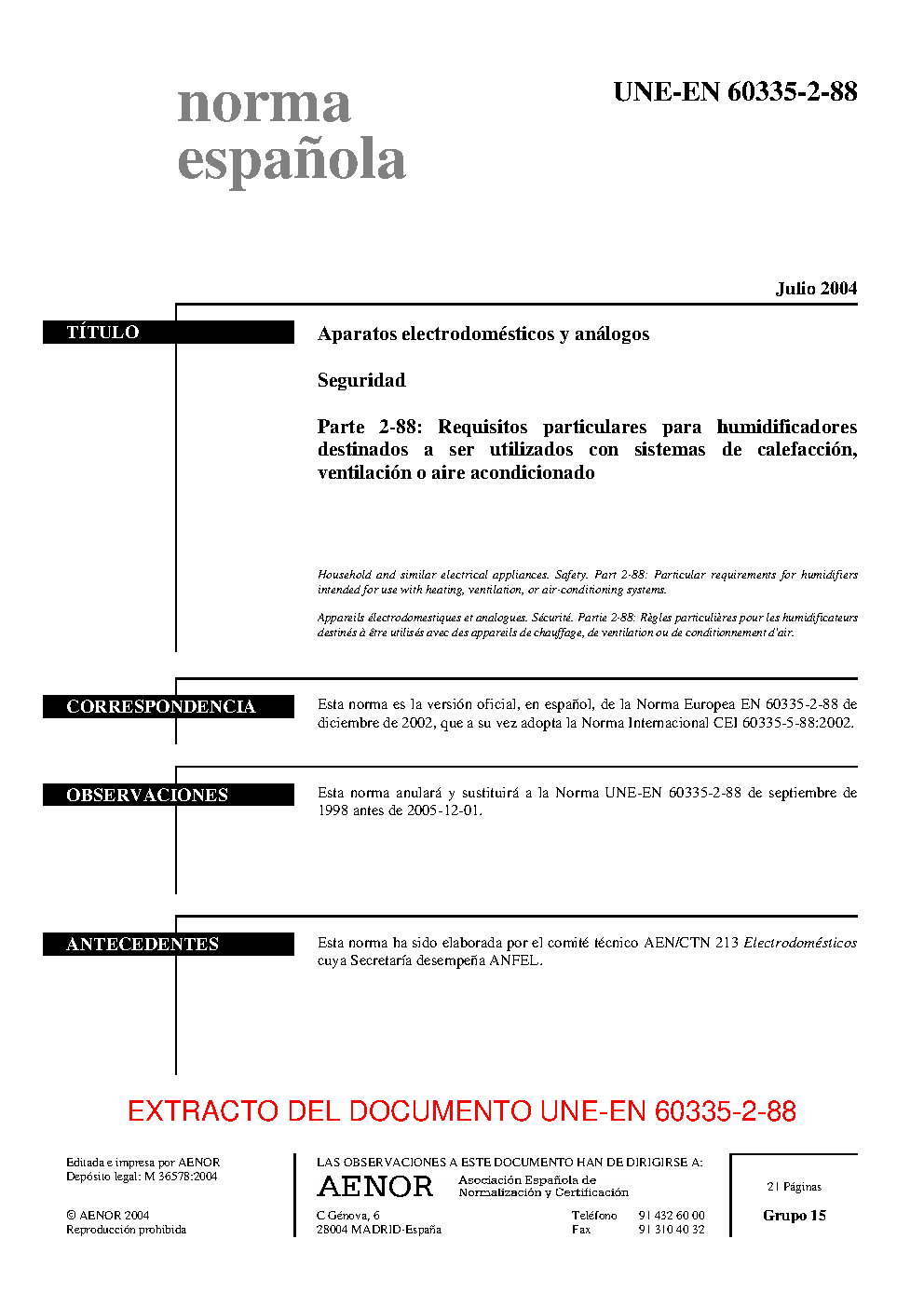 | Publisher | Asociacion Espanola de Normalizacion y Certificacion (AENOR) |