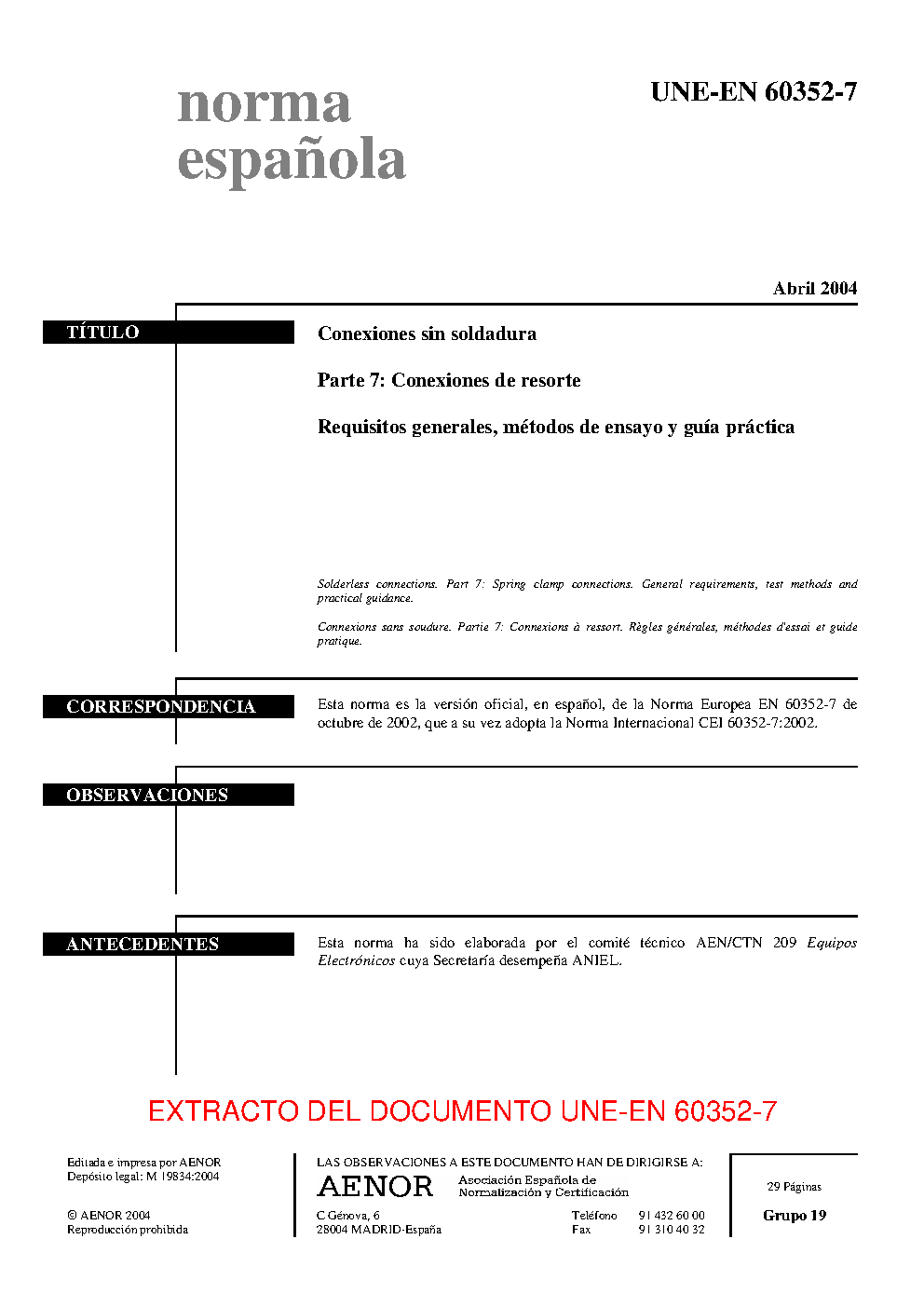 UNE-EN 60352-7:2004