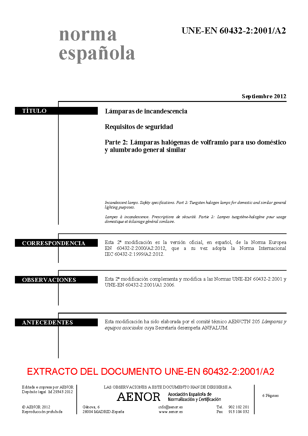 UNE-EN 60432-2:2001/A2:2012