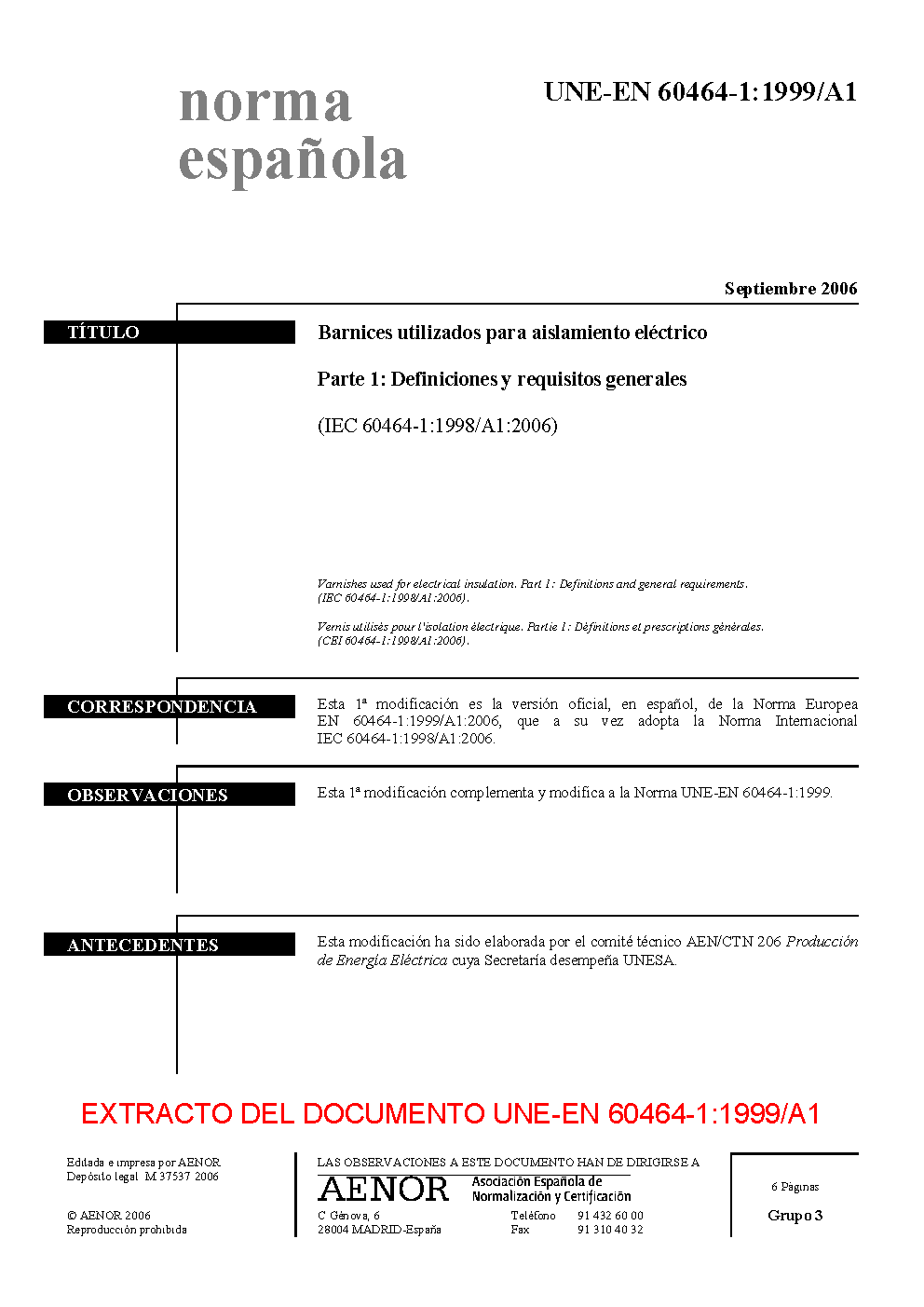 | Publisher | Asociacion Espanola de Normalizacion y Certificacion (AENOR) |