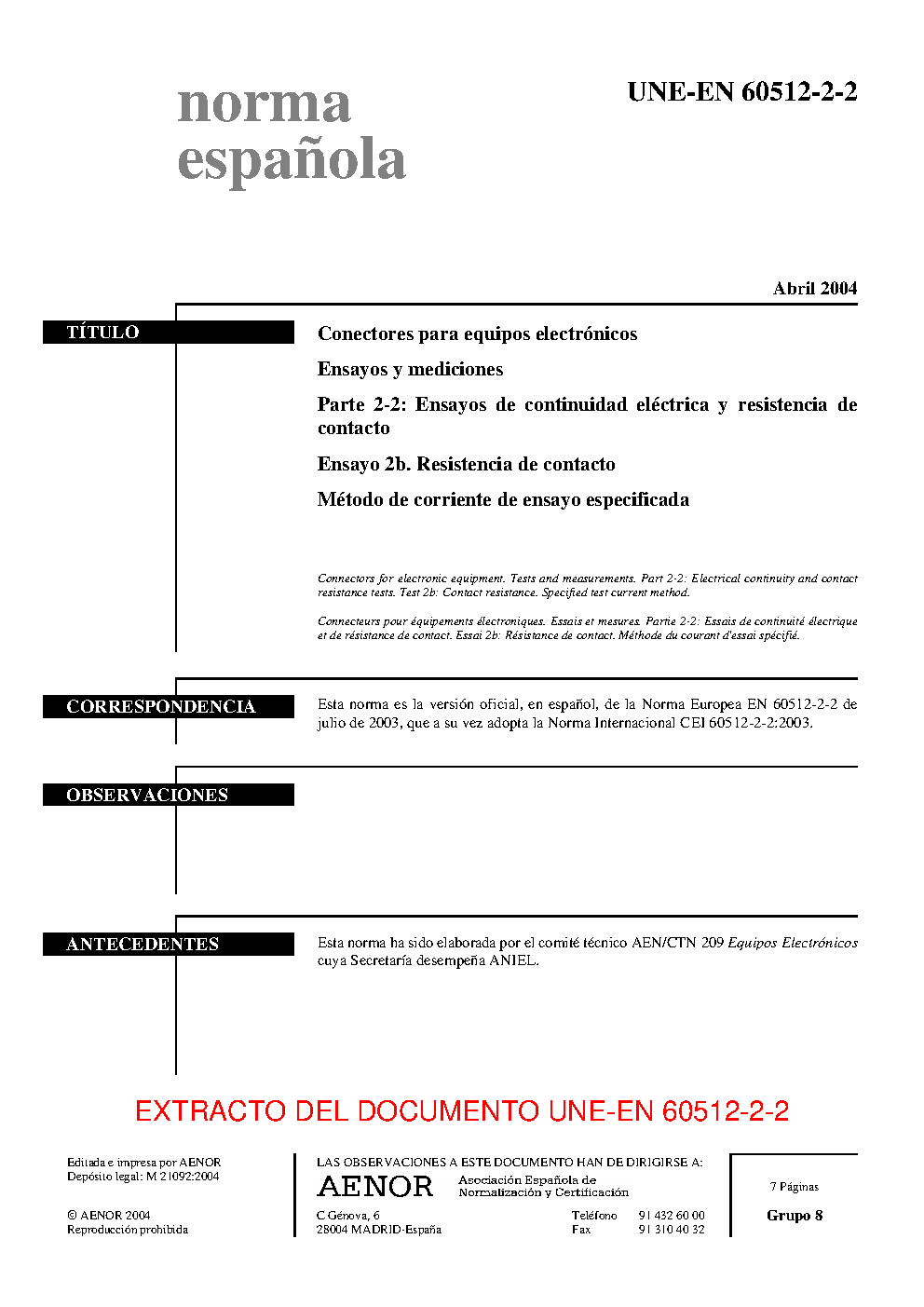 | Publisher | Asociacion Espanola de Normalizacion y Certificacion (AENOR) |