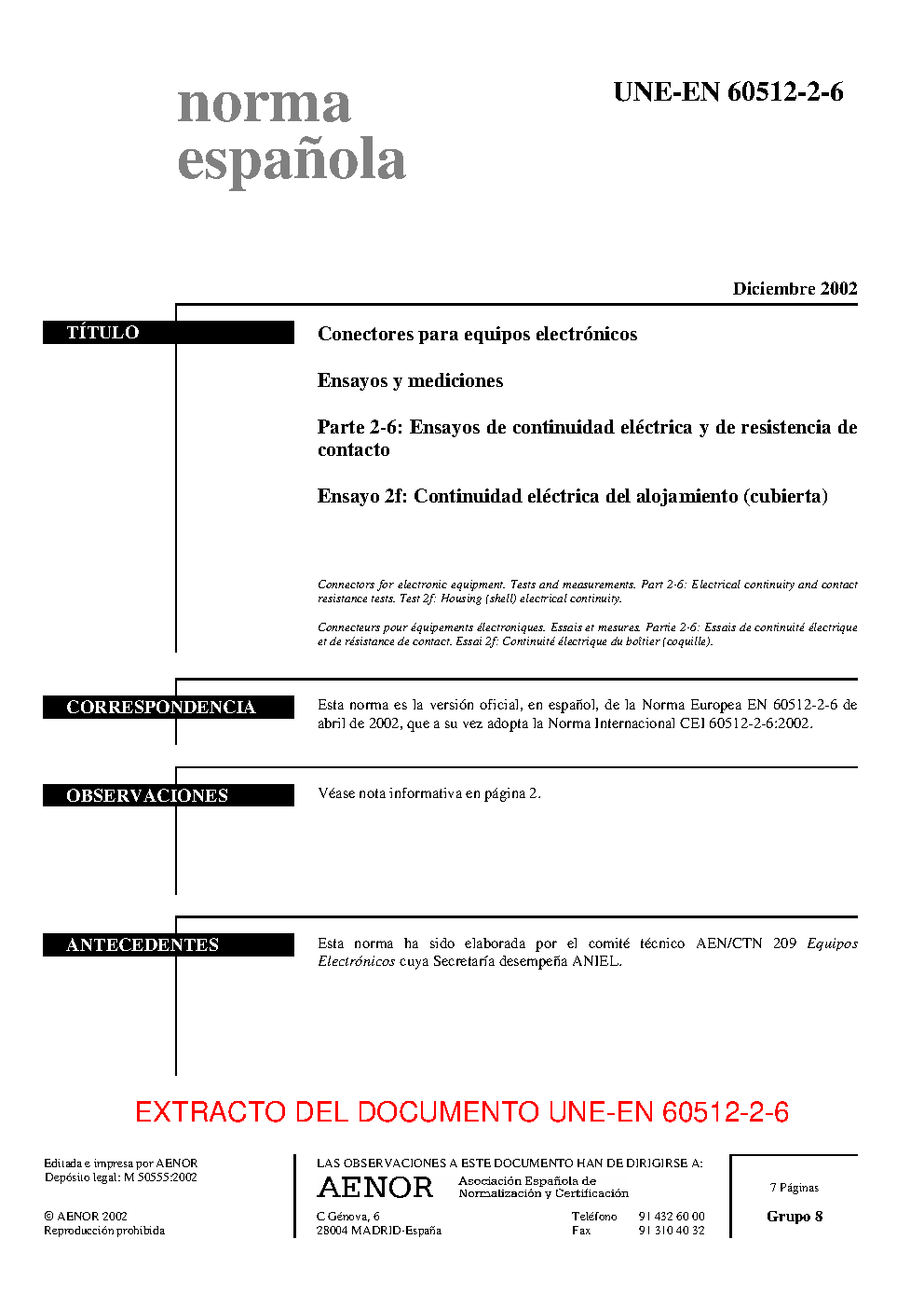 | Publisher | Asociacion Espanola de Normalizacion y Certificacion (AENOR) |