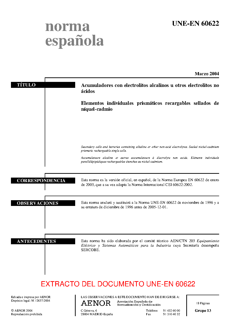 UNE-EN 60622:2004