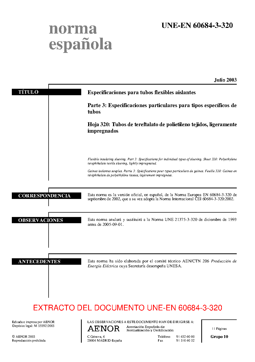 UNE-EN 60684-3-320:2003