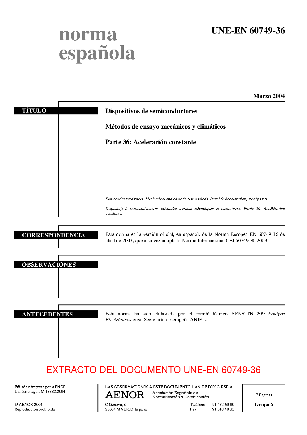 | Publisher | Asociacion Espanola de Normalizacion y Certificacion (AENOR) |