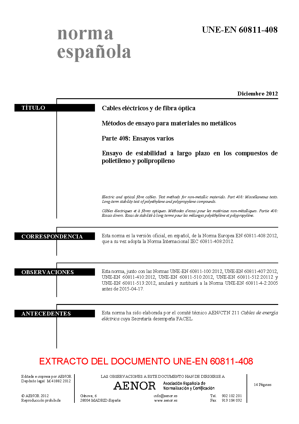 | Publisher | Asociacion Espanola de Normalizacion y Certificacion (AENOR) |