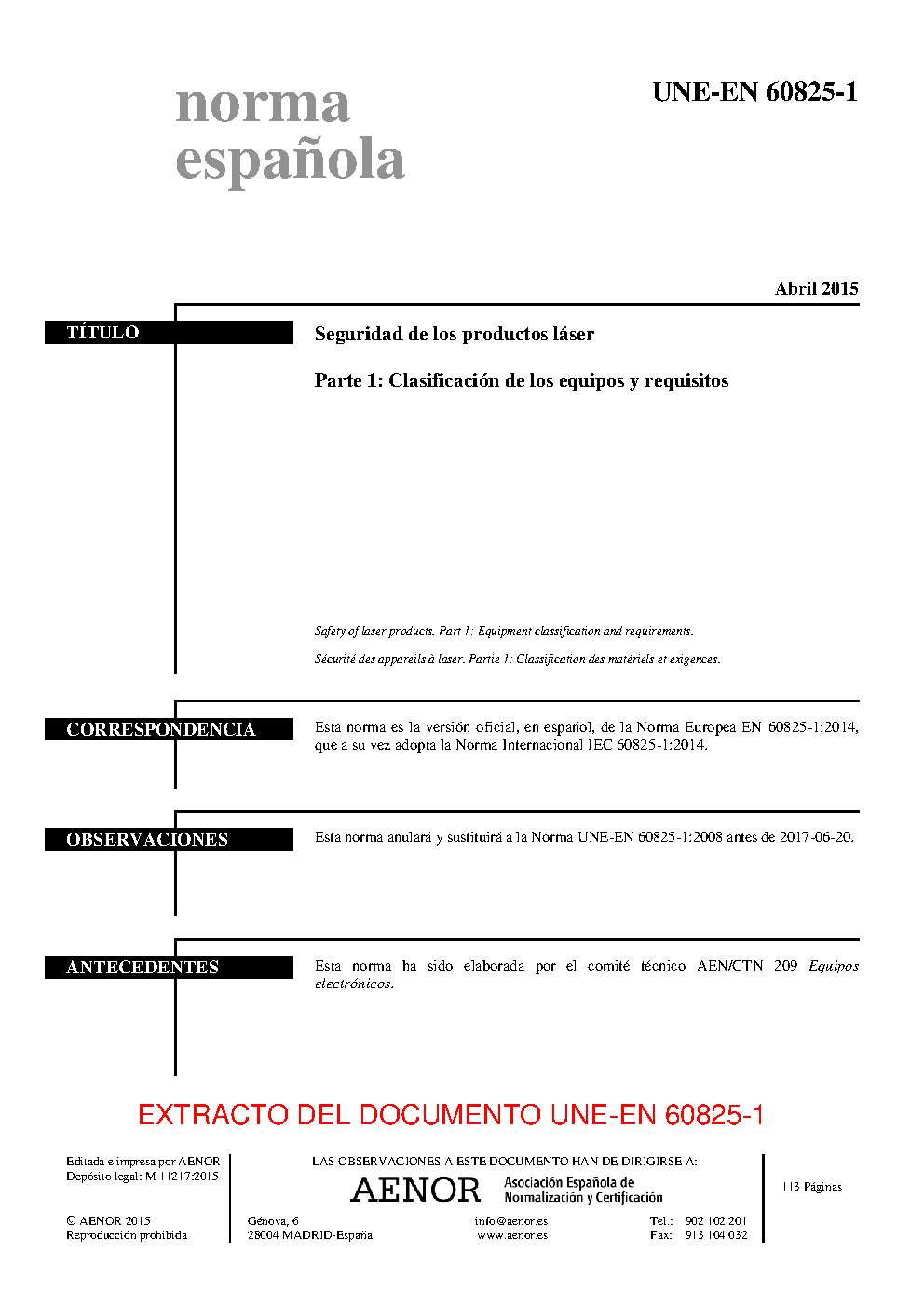 | Publisher | Asociacion Espanola de Normalizacion y Certificacion (AENOR) |