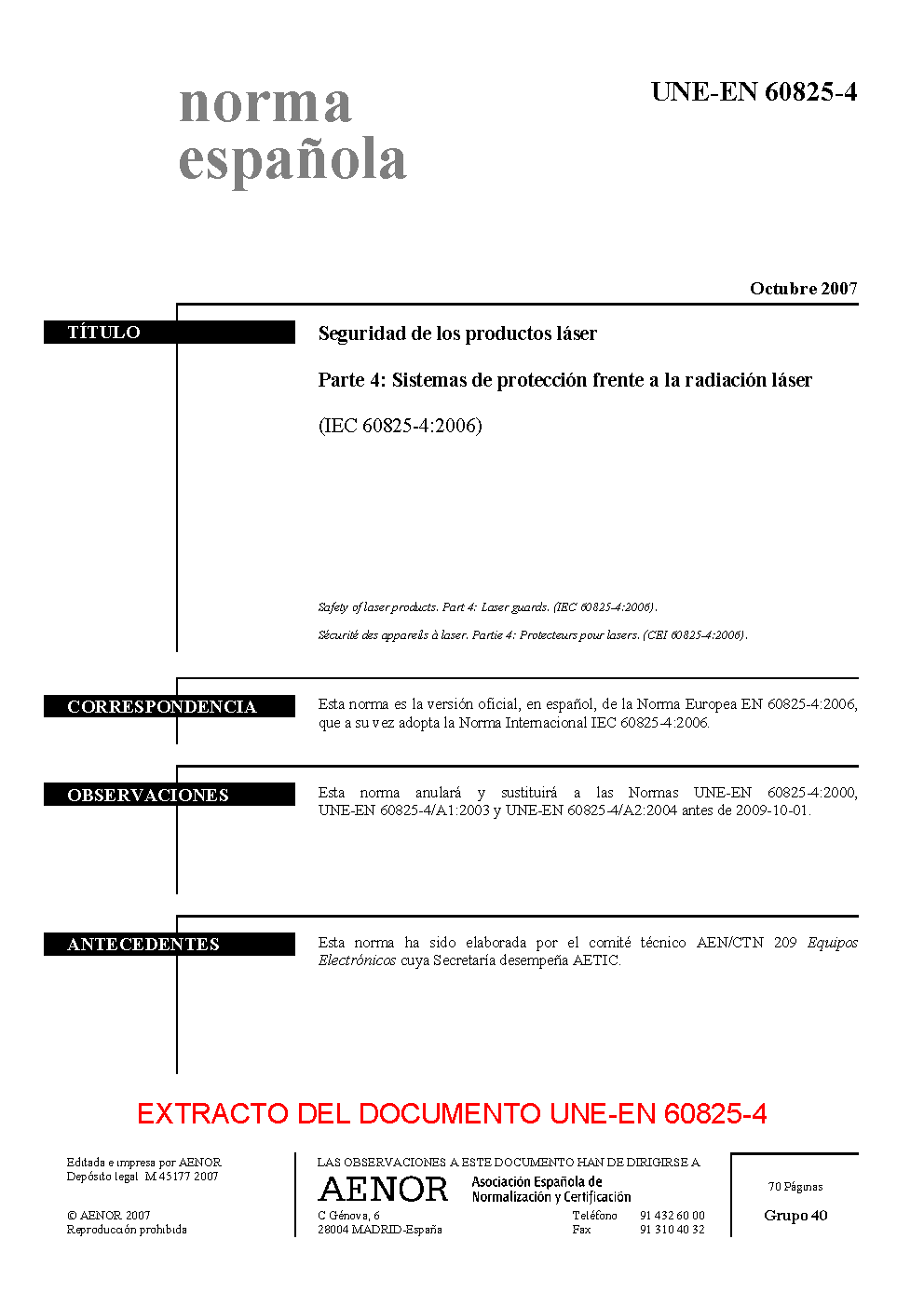 UNE-EN 60825-4:2007