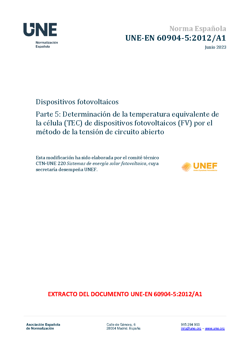 PHOTOVOLTAIC DEVICES. PART 5: DETERMINATION OF THE EQUIVALENT CELL TEMperature (ECT) of photovoltaic (PV) devices by the open-circuit voltage method.