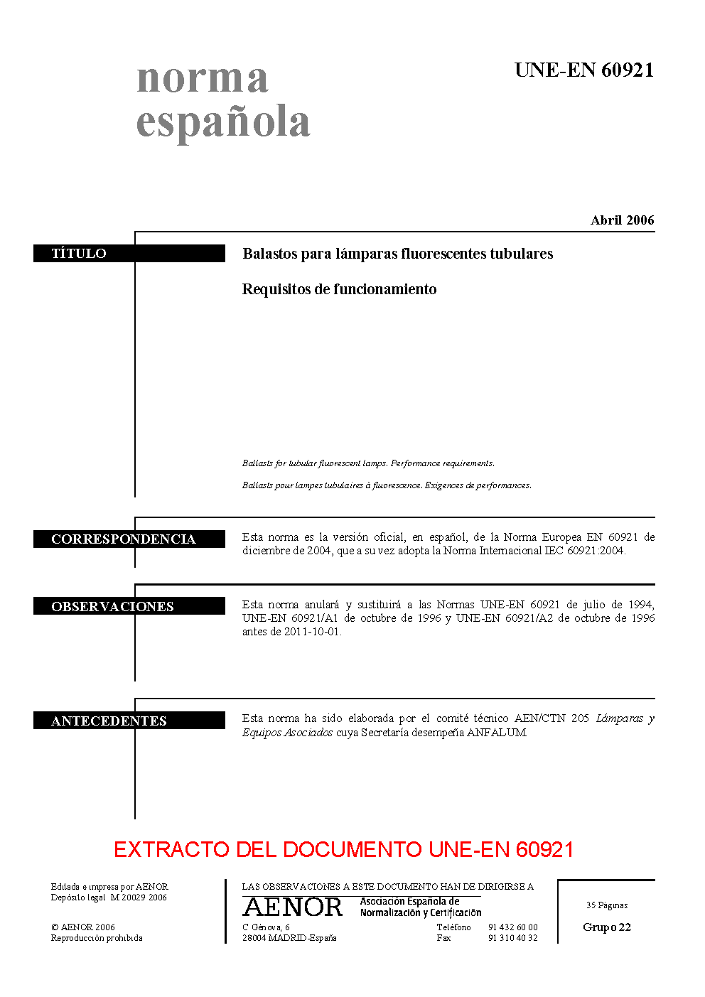 UNE-EN 60921:2006/A1:2006