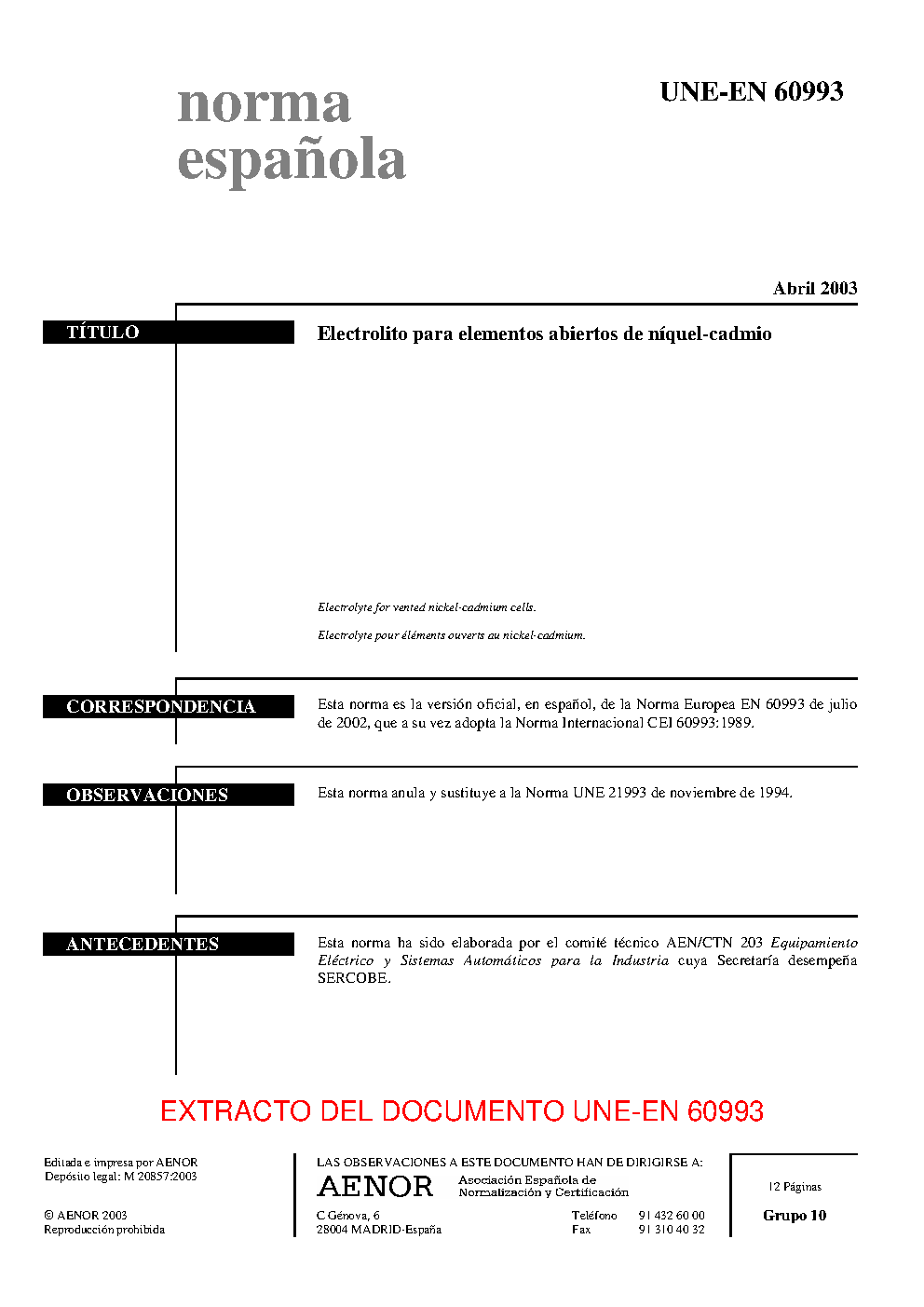 | Publisher | Asociacion Espanola de Normalizacion y Certificacion (AENOR) |